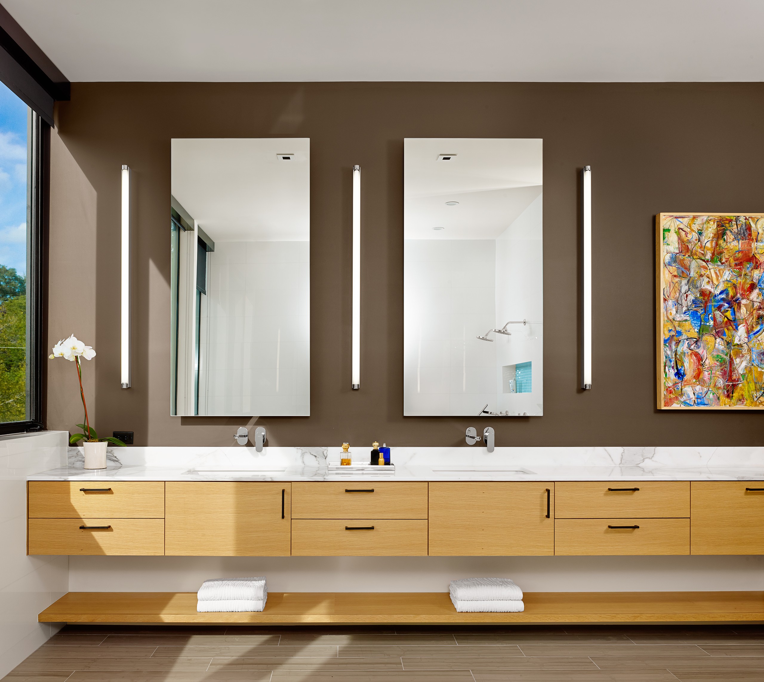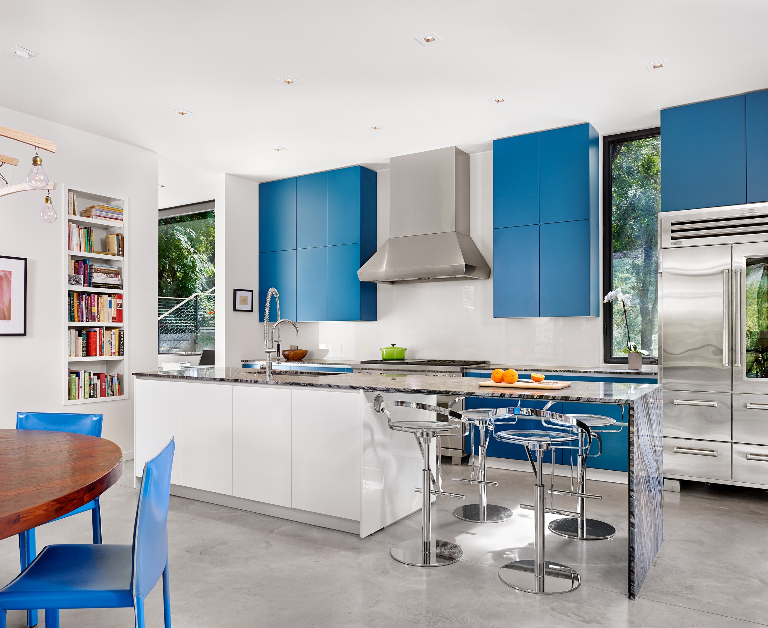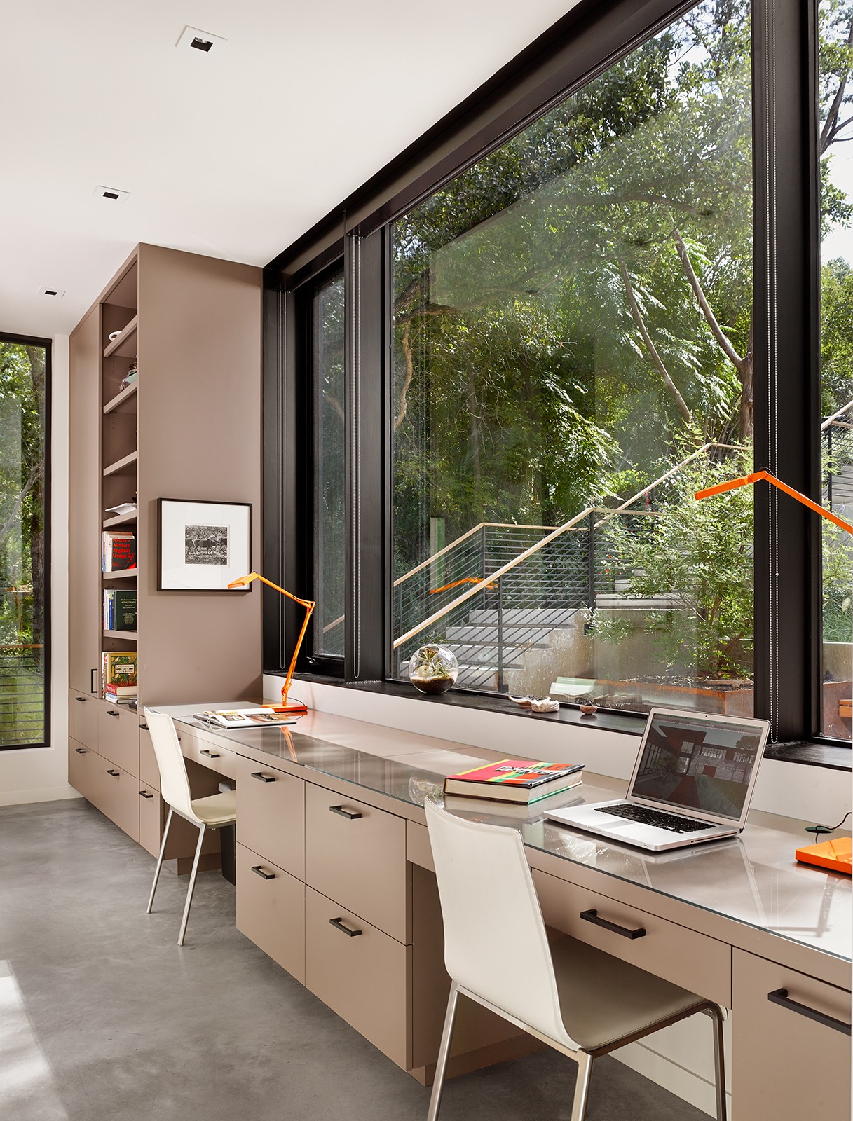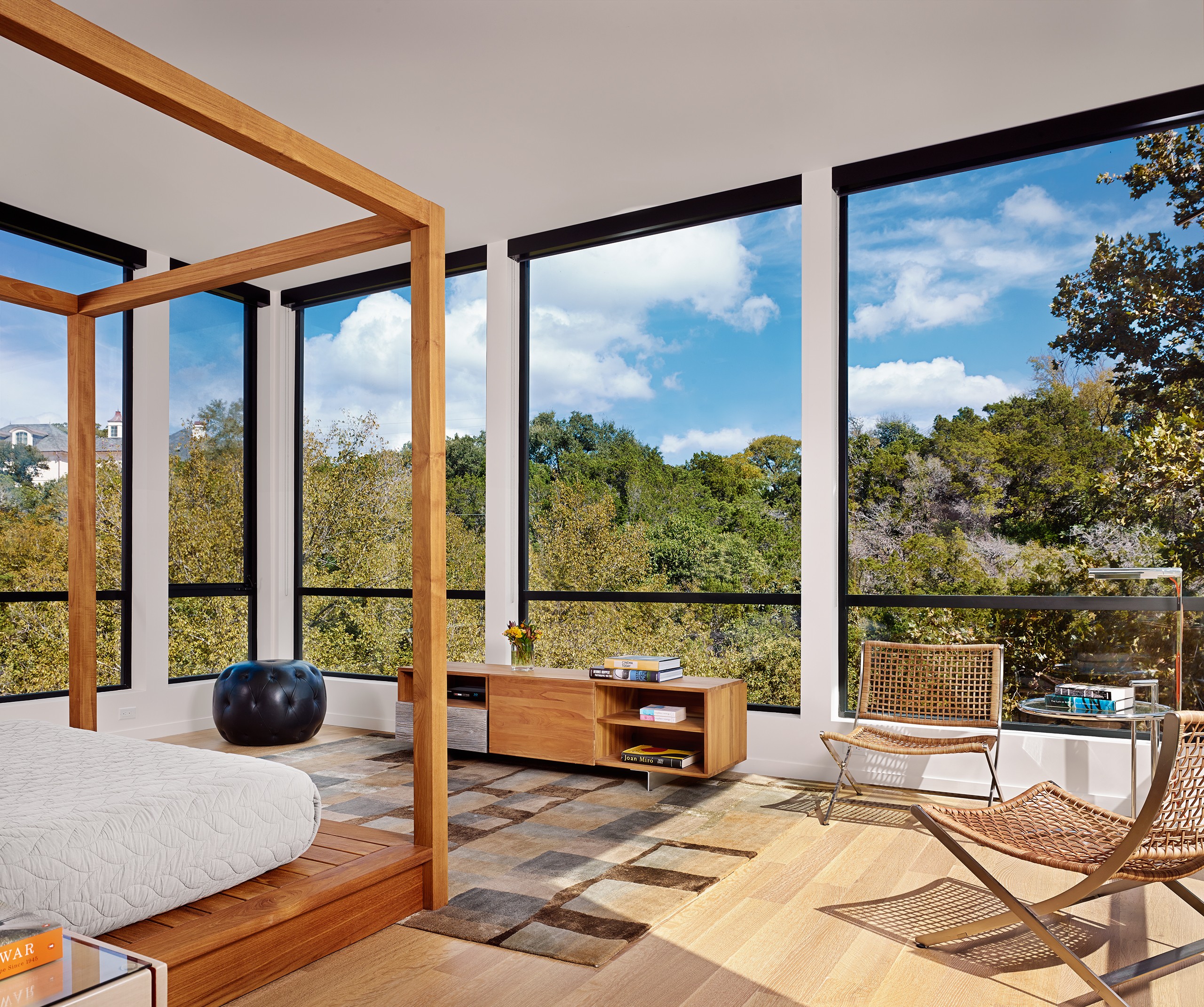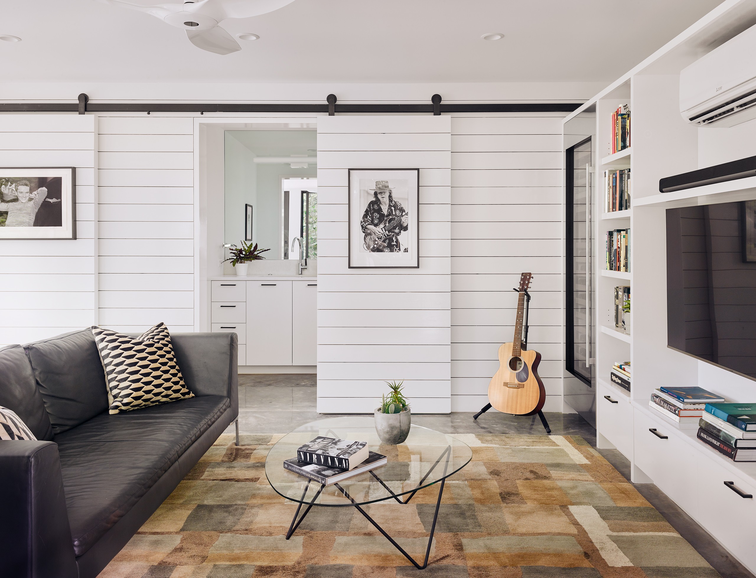 MGD’s first project that started the firm in 2011. A new build along with a small addition years later provide a tree house feel set within nature. Built on a lot deemed “too steep for construction”, the house is designed to float above and frame views of the creek below. Designed for just turned empty nesters, the project features a main house for daily living and a separate guest house for visiting family and guests. The two buildings are connected by a carport. The guest building can be “turned off” while not in use saving energy. The multi-purpose addition below becomes a surprise destination and puts one further into the creek. A completely private outdoor shower caps off the living in nature experience.